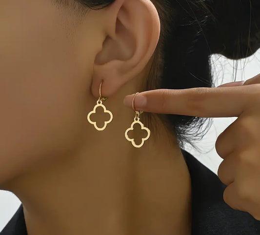 Hollow Out Clover Shaped Metal Hoop Earrings.