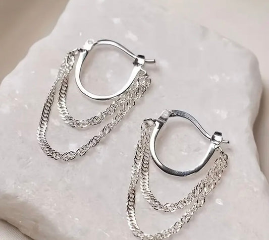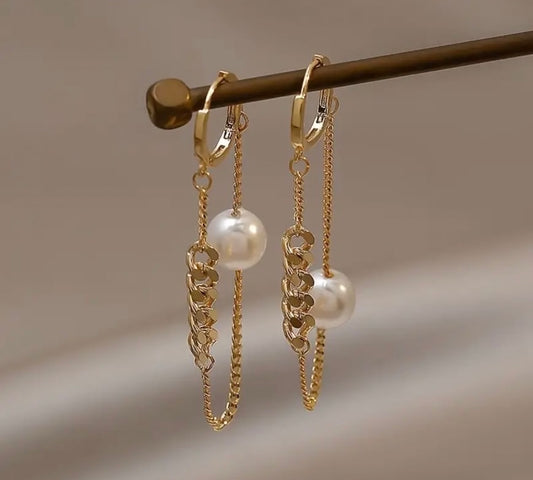 Faux Pearl Chain Design Dangle Earrings Elegant
